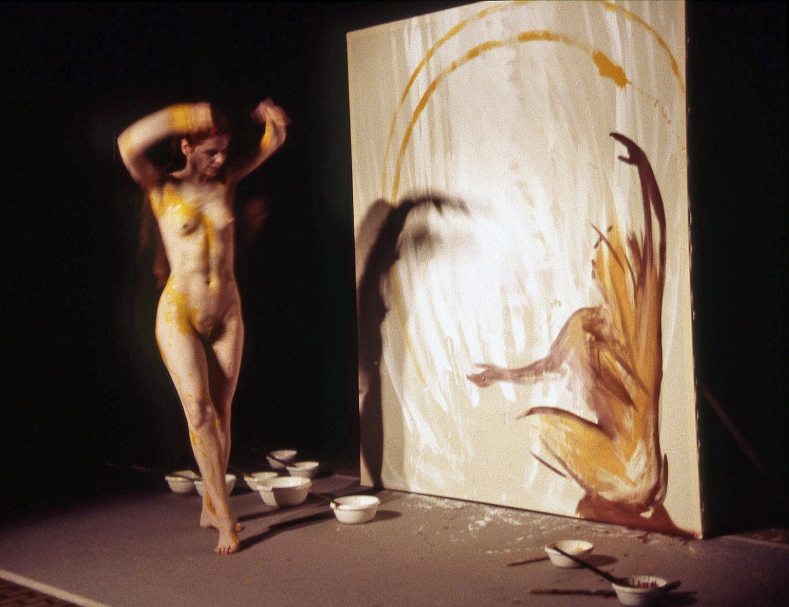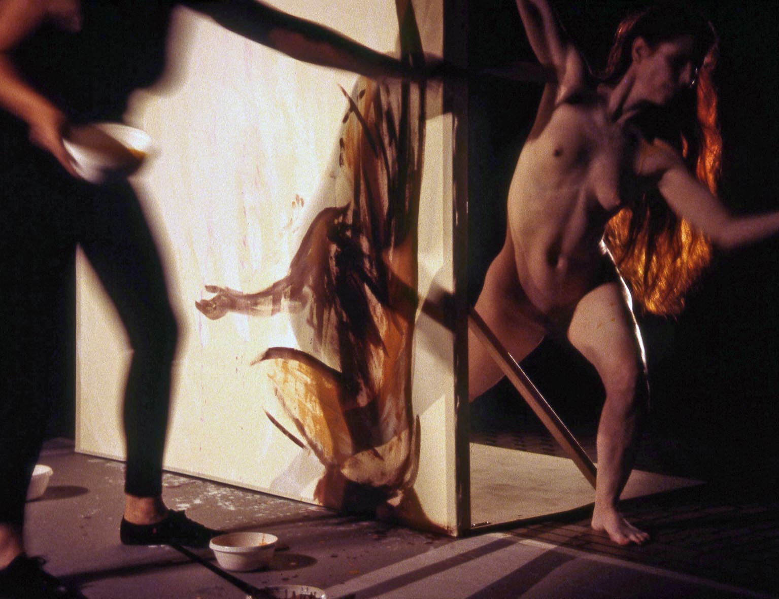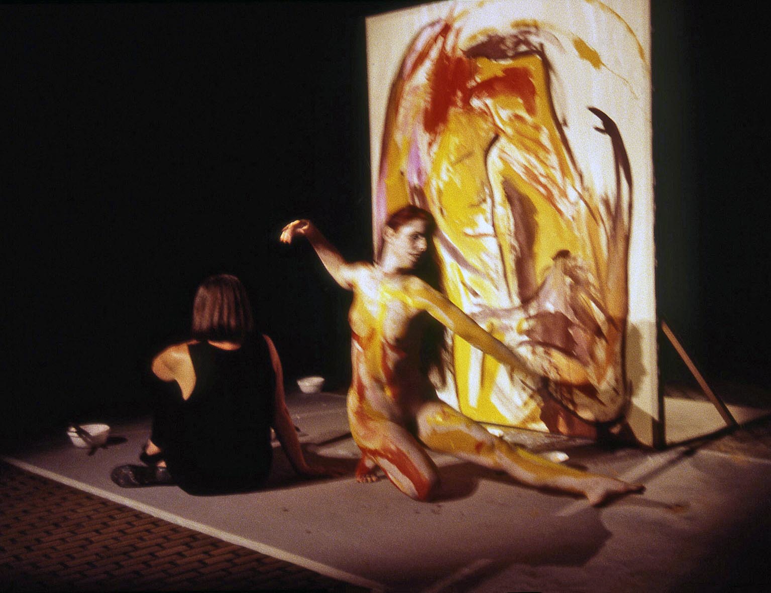 1996 Transformance mit der Tänzerin CHris Parker | Leitung der Sommerakademie in der Mannheiner Feuerwache, gemeinsam mit "ZeitRaum"(Wolfgang Sautermeister und Gabriele Oßwald)
