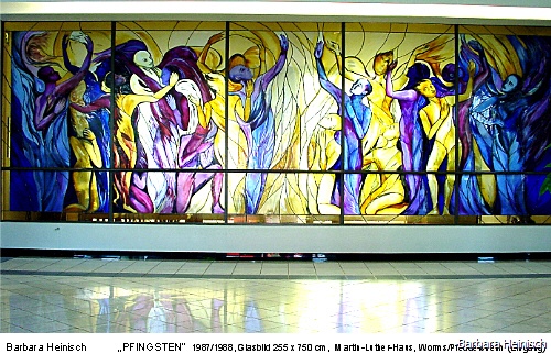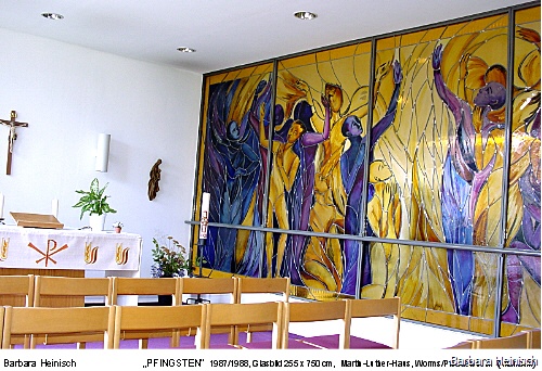 1987 Auftrag für eine Glasbild-Trennwand (7,50 x 2,55 m) zwischen Andachtsraum und Foyer im Martin-Luther-Haus, Worms