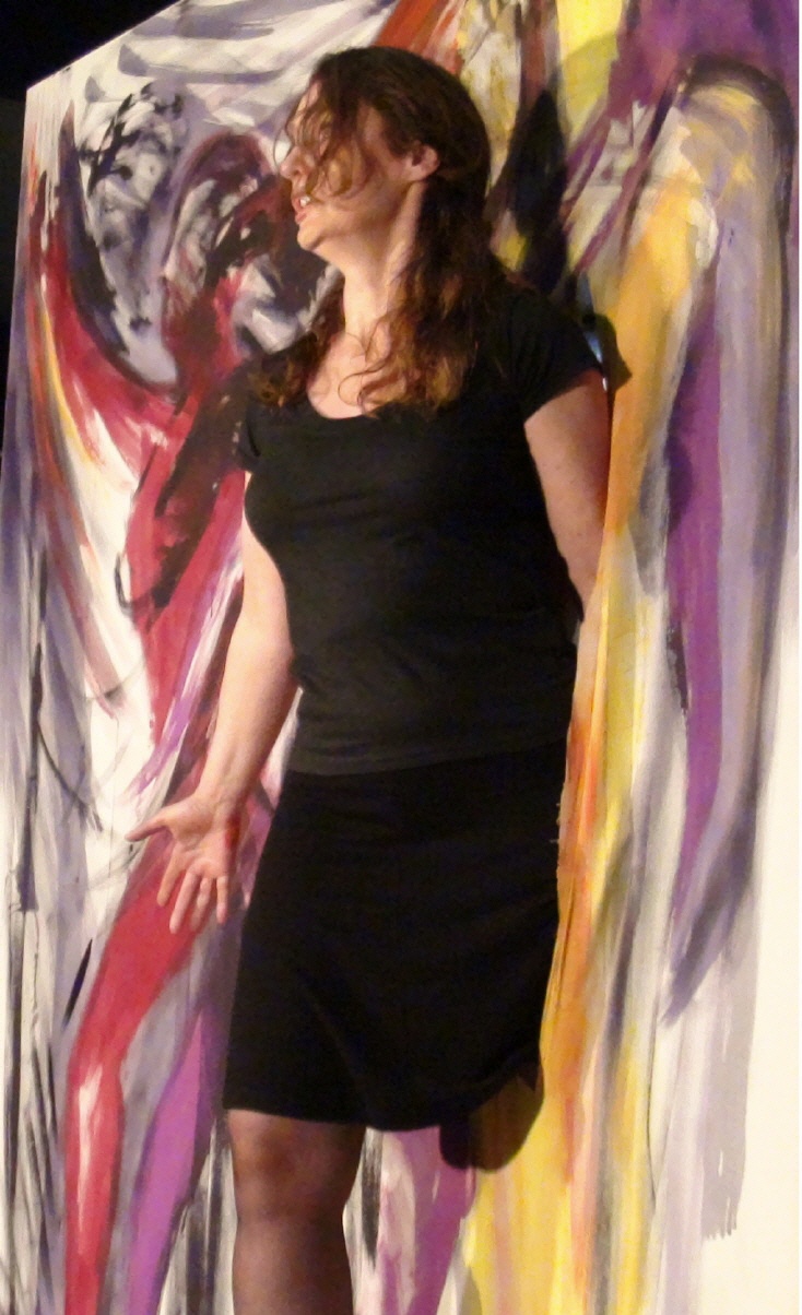 Neben der Leinwand stehen dabei griffbereit Farbtöpfe, die Künstlerin beobachtet die im Schattenriss sichtbaren Bewegungen und greift dann zum Pinsel. Zum Rhythmus der Musik geht Barbara Heinisch immer intensiver ans Werk, verwischt mit der Hand Konturen, kreiert mit dem Pinsel dynamische Formen auf der Leinwand. Nach und nach deckt die Künstlerin die Leinwand mit Farben zu, der Schatten des Modells dahinter ist kaum noch erkennbar. Das Modell bestimmt das Bild mit, und Barbara Heinisch verlangt ihm die gleiche Präsenz und Vitalität ab, die sie selbst in ihre Arbeit einbringt, was alle Beteiligten emotionalisiert.