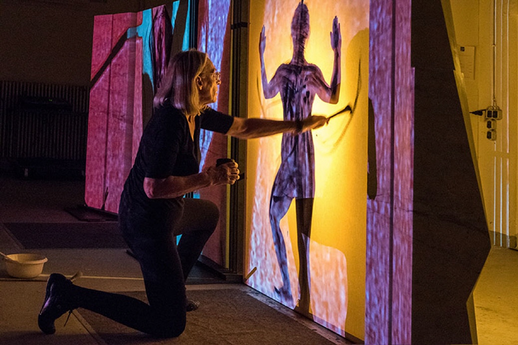 Mit einer spannenden analog-digitalen Performance gibt Bar-bara Heinisch dem Festgesche-hen den ihm gebührenden künstlerischen Rahmen . Autor und Fotograf: Rolf Lorig