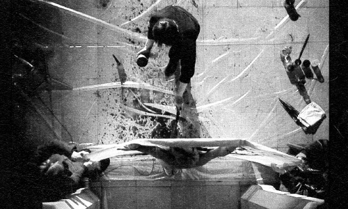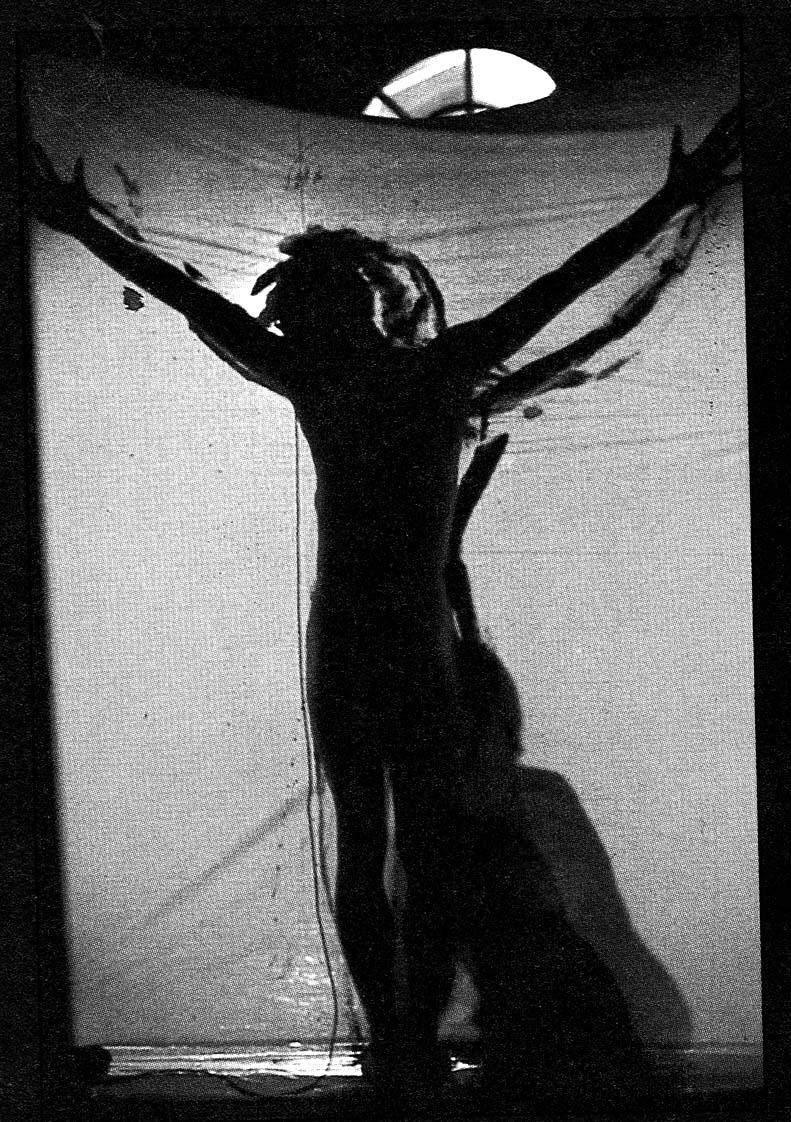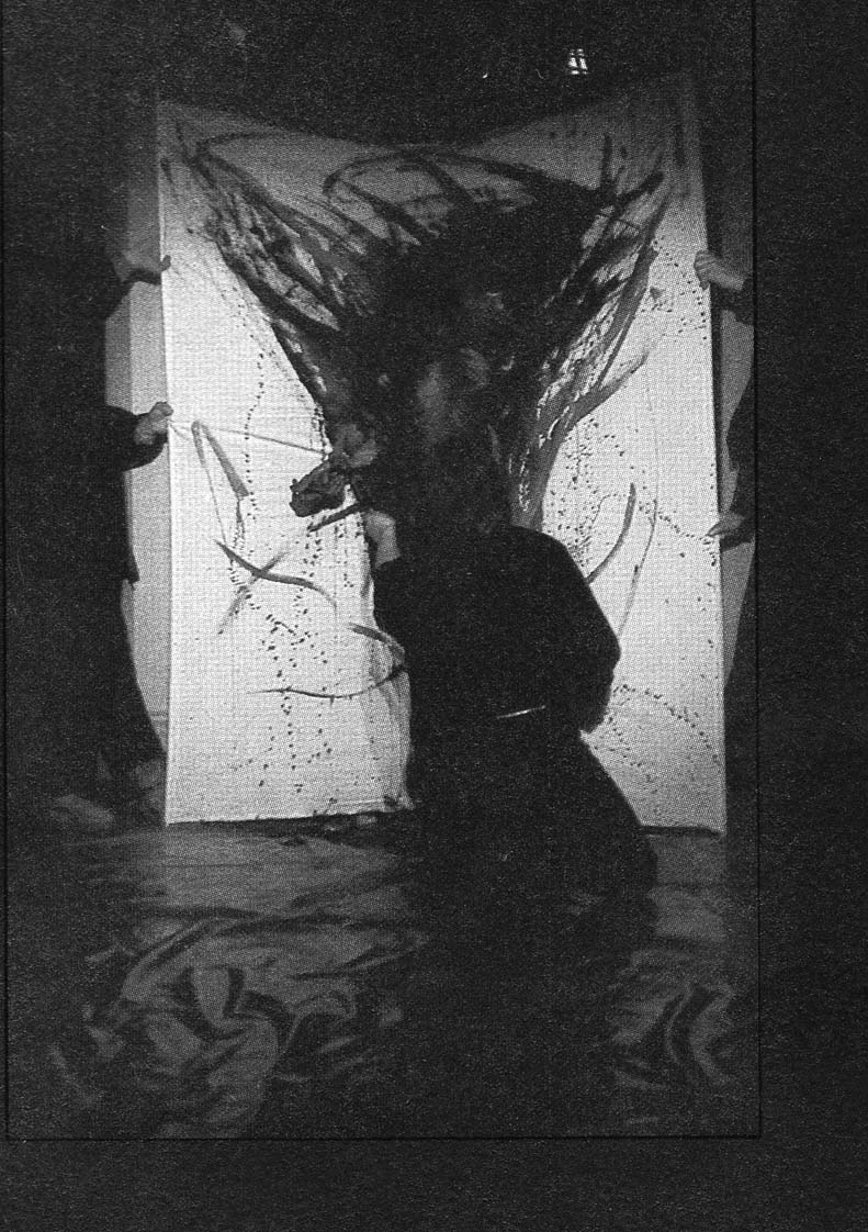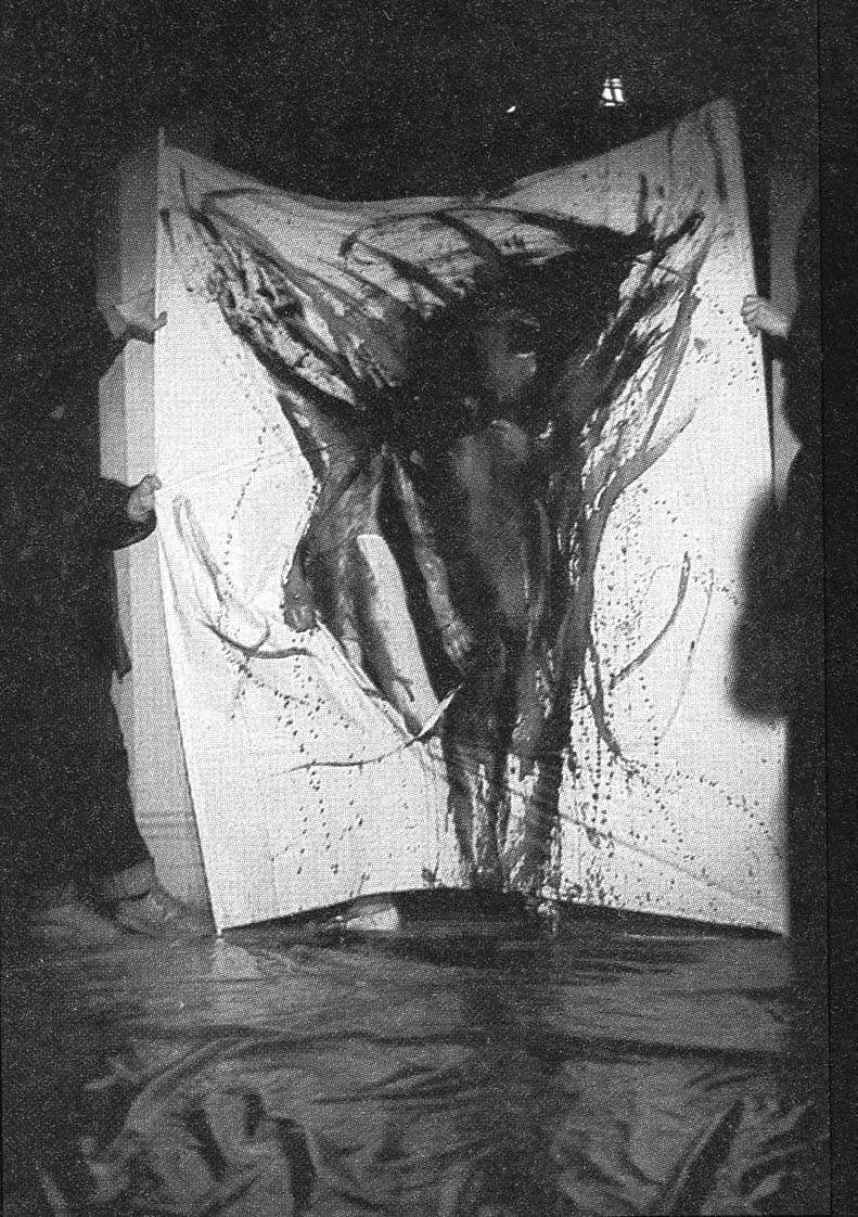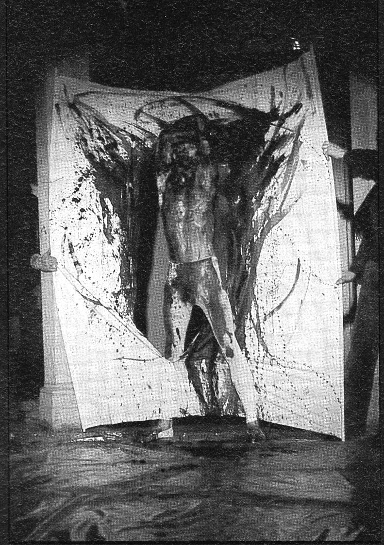 Malerei als Ereignis an einem Gründonnerstag 1980 mit dem Sänger Mark Eins und der experimentellen Rockband DIN A-Testbild, Künstlerhaus Bethanien, Berlin (Sammlung Pax-Christi-Kirche, Krefeld)