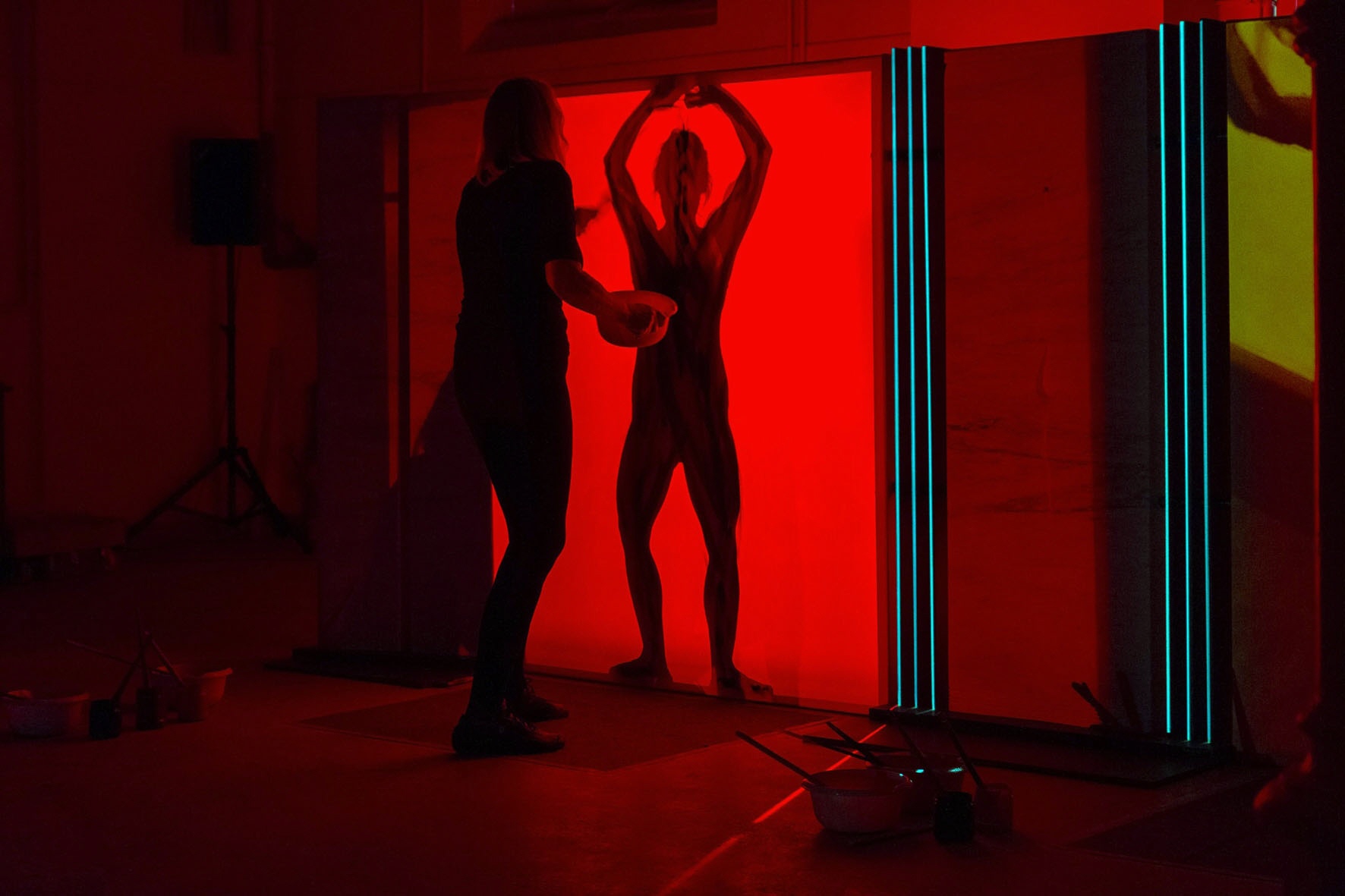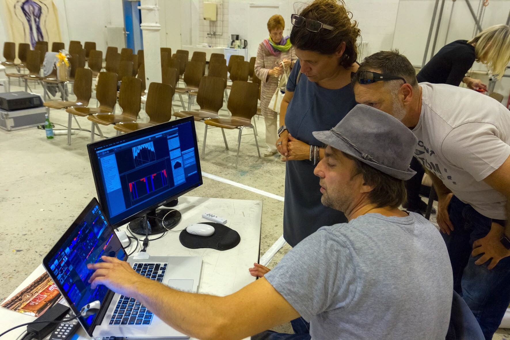 "Mit einer spannenden analog-digitalen Performance gibt Bar-bara Heinisch dem Festgesche-hen den ihm gebührenden künstlerischen Rahmen" . Autor und Fotograf: Rolf Lorig